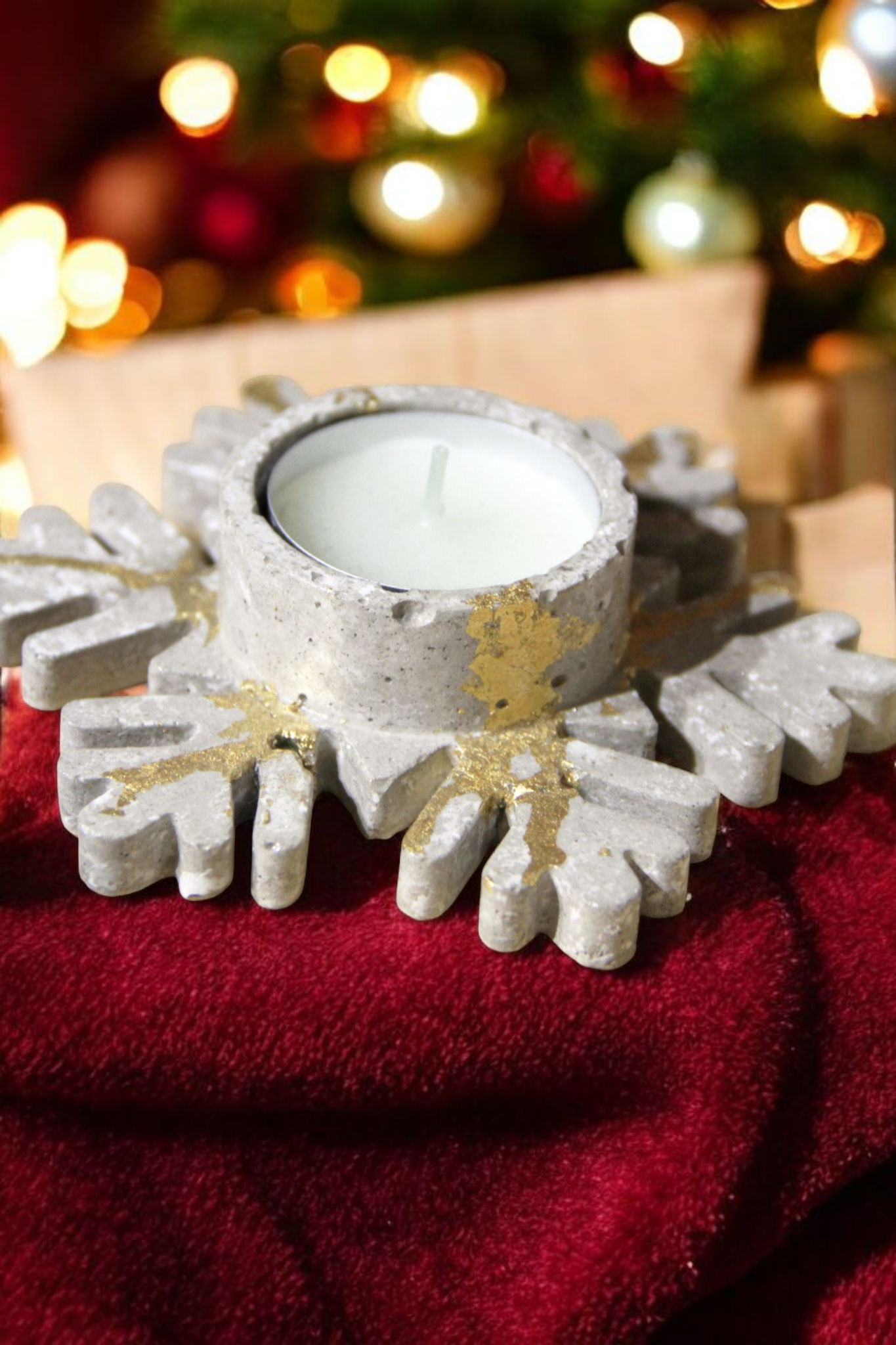 Φέρε τη μαγεία του χειμώνα στο χώρο σου με αυτήν τη μοναδική βάση για ρεσώ σε σχήμα χιονονιφάδας, κατασκευασμένη από τσιμέντο για σταθερότητα και ανθεκτικότητα. Σε χρώμα γκρι, στολισμένη με λεπτομέρειες από χρυσά φύλλα, δημιουργεί μία εκλεπτυσμένη και εορταστική ατμόσφαιρα.